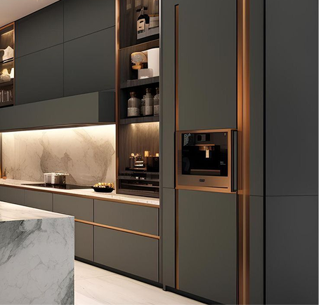 Defined by clean lines and a sleek profile, handle trims bring a modern and timeless character to the kitchen. Their understated elegance makes them ideal for interiors that value refined design and functional simplicity.