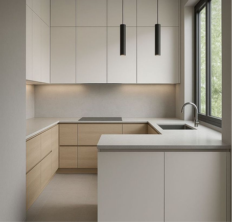 Maximise corner space with an L-shaped layout that creates a natural workflow while keeping your kitchen open and inviting. Perfect for multitasking and entertaining in style.